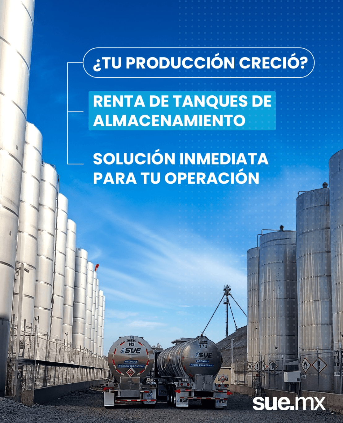 SUE cuenta con tanques de almacenamiento de acero inoxidable grado alimenticio, diseñados para preservar la calidad de líquidos y semi-líquidos.